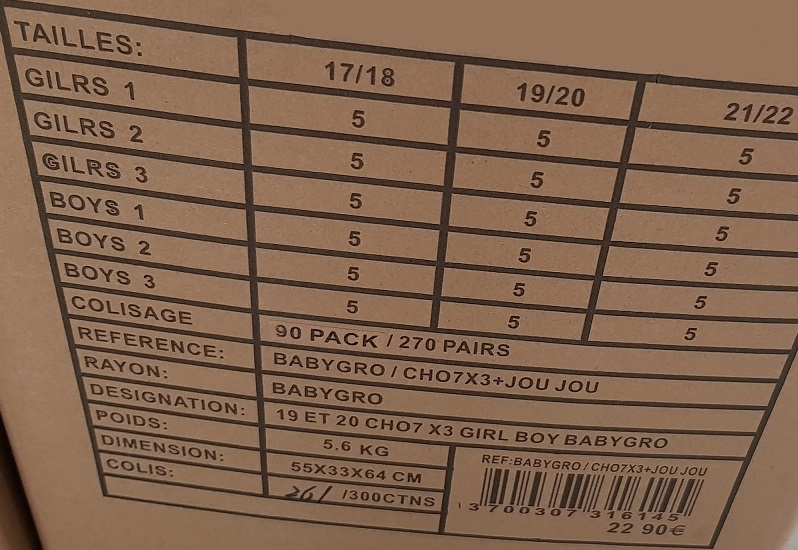 La liste ci dessous vous montre les produits que l’on retrouve dans les palettes de bazar.